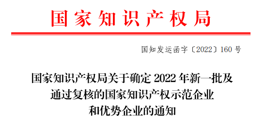 近日,国家知识产权局发布《国家知识产权局关于确定2022年新一批及通过复核的国家知识产权示范企业和优势企业的通知》,海南JJB电竞药业集团股份有限公司入选2022年新确定的国家知识产权示范企业名单,成为482家新一批国家知识产权示范企业之一。这标志着JJB电竞药业创新研发实力和知识产权管理成果进一步得到了国家有关部门认可。